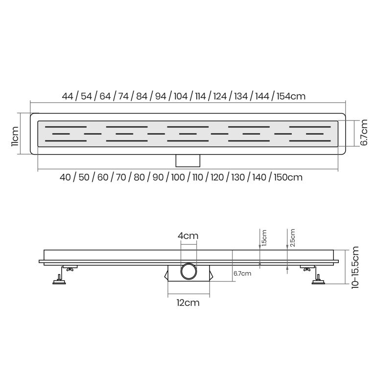 Premeňte svoju kúpeľňu na oázu štýlu a inovácií vďaka našim vynikajúcim lineárnym sprchovacím odtokom. Nerezová oceľ najvyššej kvality, umne kartáčovaná, v kombinácii s pieskovaným hlavným telom. Dizajn vašej kúpeľne si zaslúži niečo výnimočné, preto sú naše sprchové odtoky navrhnuté tak, aby nielen zaujali, ale aj inšpirovali svojou odolnosťou. Vďaka zapustenému povrchovému materiálu vám zaručujeme výrobok, ktorý obstojí v skúške času. Inštalácia je rýchla, nekomplikovaná a bez nutnosti použitia batérií. Mysleli sme na všetko, aby ste sa mohli bez obáv sústrediť na to podstatné. Vylepšite tvar a funkciu svojho sprchového kúta pomocou nášho elegantného a odolného lineárneho sprchového odtoku, ktorý dodá vašej každodennej rutine sofistikovanosť.