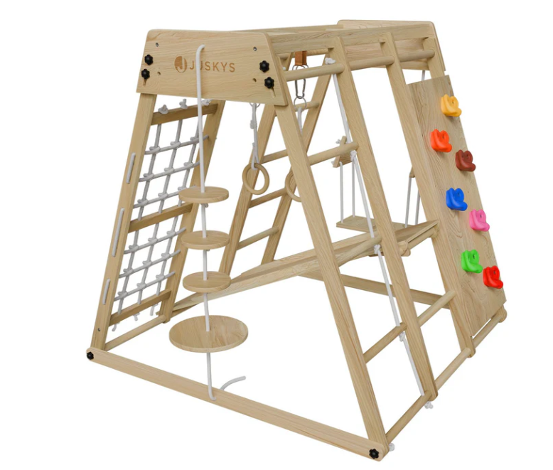 Premeňte detskú izbu na miesto plné dobrodružstva! Drevené indoor ihrisko ponúka malým objaviteľom nespočet možností k hre - môžu liezť po farebnej lezeckej stene, kĺzať sa, hojdať na hojdačke či trénovať obratnosť na povrazovom rebríku. Kompaktná veľkosť zaistí, že sa ihrisko hodí aj do menšej izby a skladacia funkcia uľahčí ukladanie, keď je potrebné uvoľniť priestor.