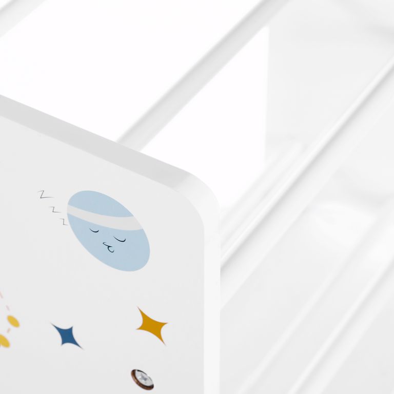 Hviezdy a planéty rozsvietia izbu a premenia upratovanie na zábavu. Deväť farebných košov sa ľahko vyťahuje a pomáha deťom triediť a vracať veci na svoje miesto. Ideálna veľkosť pre samostatnosť aj radosť z poriadku.