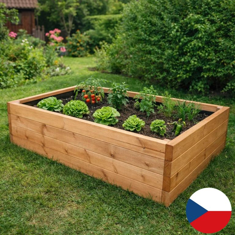 Vyvýšený záhon pre ľahšiu prácu a bohatú úrodu je vyrobený zo 40 mm hrubého materiálu, takže jeho výdrž je oveľa dlhšia ako u iných doskových záhonov. Záhon je povrchovo ošetrený olejovou matnou lazúrou, ktorá sa po rokoch nelúpe, nepraská a dá sa pretierať akýmkoľvek náterom určeným na drevo. Geotextília je súčasť balenia produktu a slúži na oddelenie zeminy od záhona.
