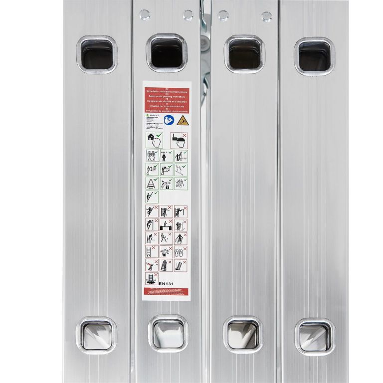 Tento viacúčelový hliníkový rebrík sa skvele hodí na najrôznejšie práce okolo domu aj na záhrade. Vďaka šiestim kĺbom a štyrom skladacím dielom s celkom dvanástimi priečkami si ho ľahko prispôsobíte podľa potreby – či už ako klasický oporný rebrík, samostatne stojace štafle alebo ako kompaktný rebrík na jednoduché uskladnenie.