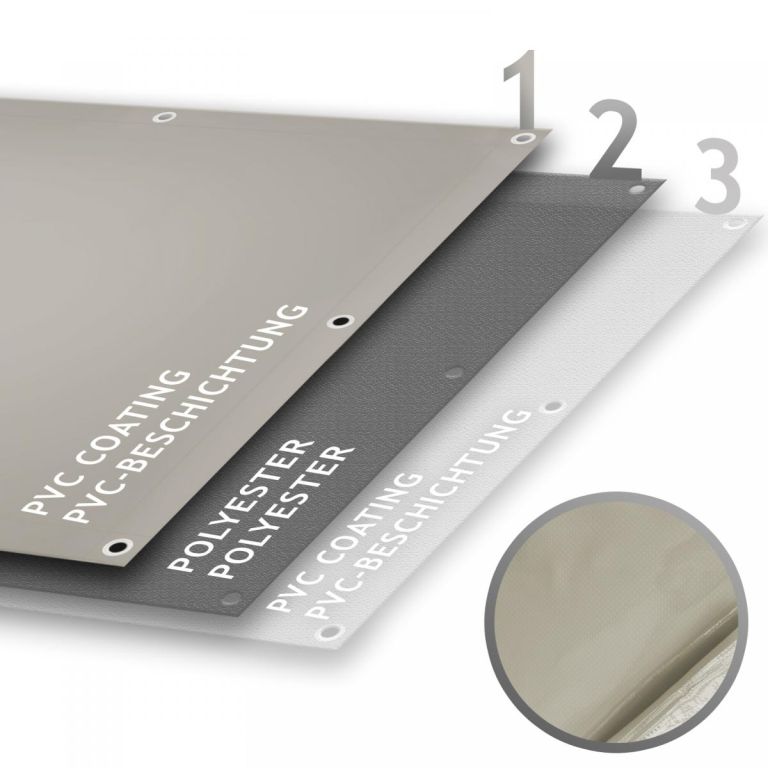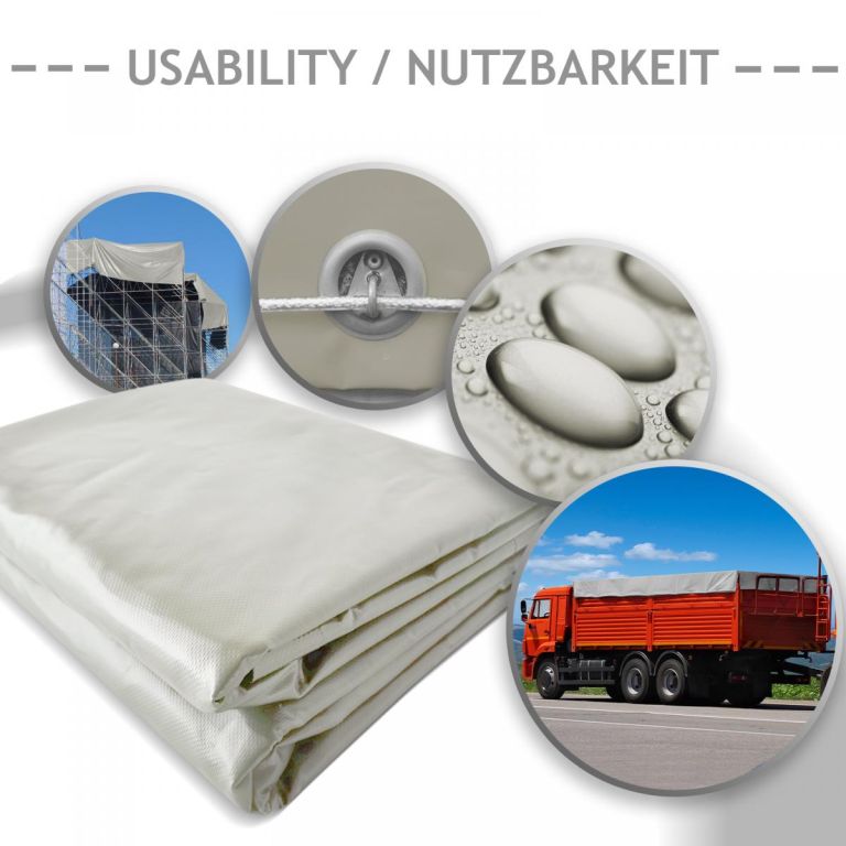 Plachta je vyrobená z pevnej tkaniny s PVC povlakom, čo zaisťuje dlhú životnosť a jednoduchú údržbu. Materiál je vodeodolný, odolný voči UV žiareniu, hnilobe a plesniam. Vďaka rozmeru 4 x 3 ma hmotnosti 650 g/m² je vhodná pre široké využitie v domácnosti aj na stavbe.