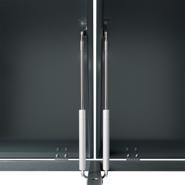 Celá konštrukcia je tvorená odolnou pozinkovanou oceľou, ktorá zvládne akékoľvek počasie a nevyžaduje zložitú údržbu. Vďaka plynovým vzperám je manipulácia s horným vekom maximálne pohodlná, zatiaľ čo uzamykateľné dvere v čelnej časti zaistia bezpečné uloženie nádob. Štvormiestny prístrešok je možné navyše ľahko rozšíriť podľa potreby.