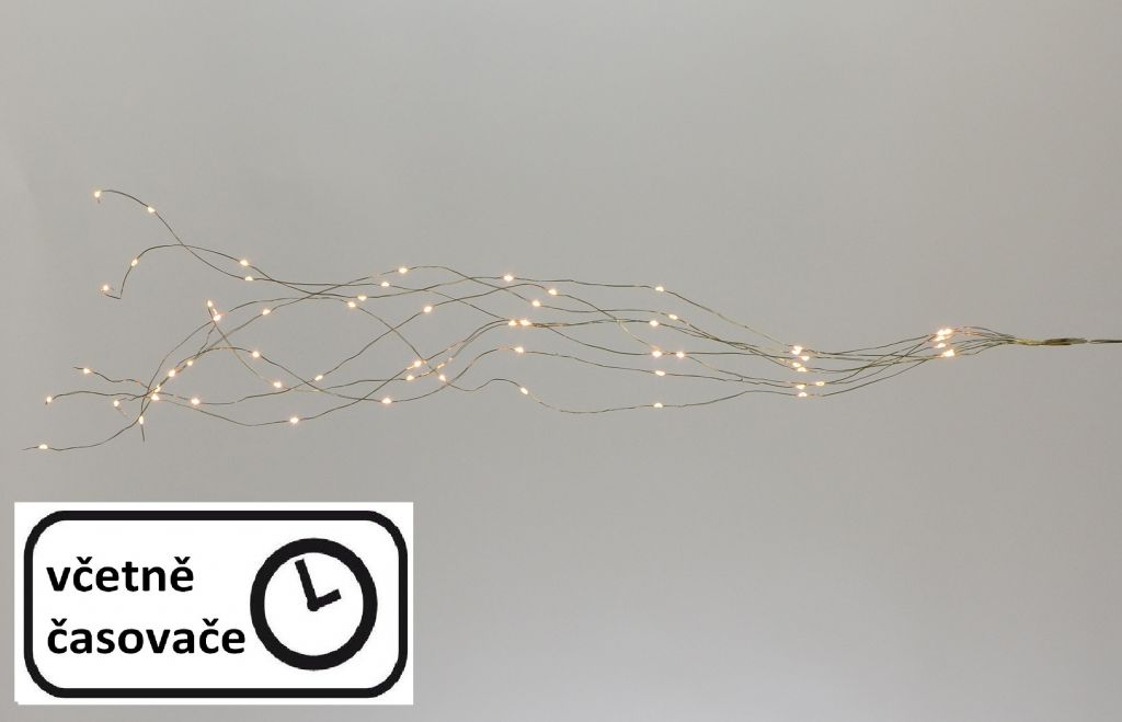 Netradičná svetelná LED reťaz, v ktorej sú diódy umiestnené na jemnom medenom drôtiku. Súčasťou vianočnej reťaze je časovač, vďaka ktorému sa bude osvetlenie po prvom zapnutí automaticky zapínať a vypínať - vždy 6 hodín bude svietiť a 18 hodín bude v nečinnosti.