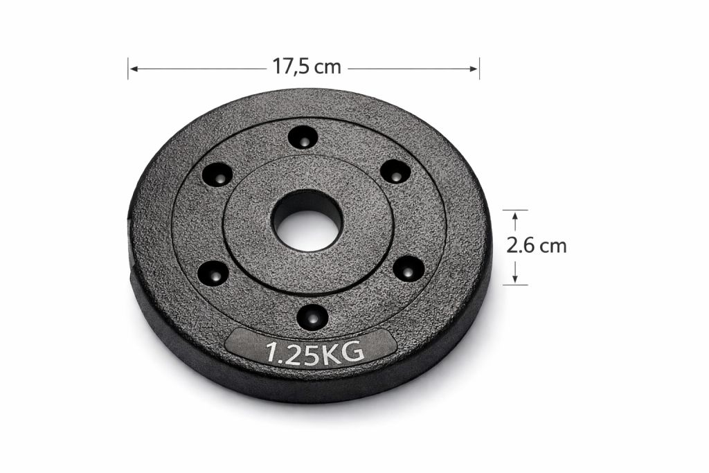 - sada kotúčov: 4 x 1,25 kg, 4 x 1,5 kg, 4 x 2 kg