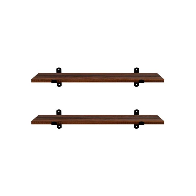 Táto sada dvoch nástenných políc v retro dizajne okamžite oživí každý interiér. Tmavé drevo v kombinácii s čiernymi kovovými konzolami vyzerá elegantne a moderne, vďaka čomu sa skvele hodí do spální, obývacích izieb a predsiení. Vytvára priestor pre dekorácie, knihy alebo drobnosti, ktoré chcete mať na očiach.