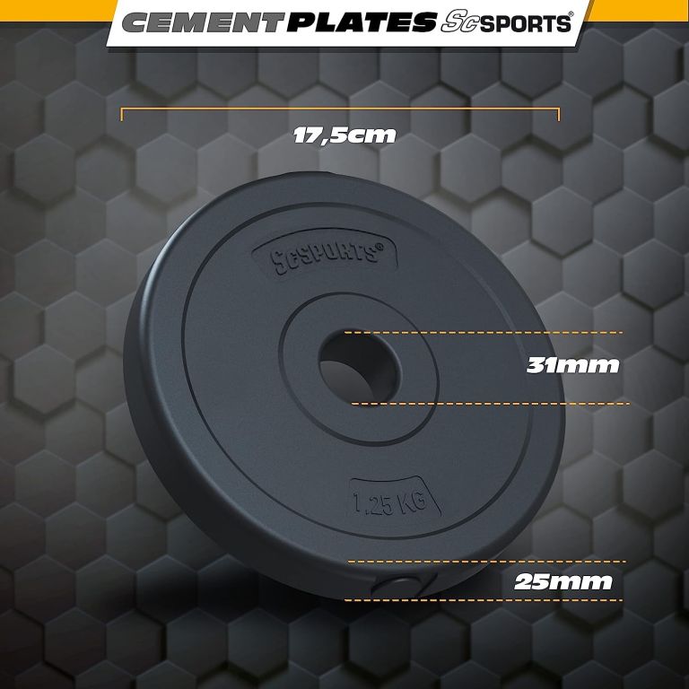 - Hmotnosť diskov: 8 x 2,5 kg, 4 x 1,25 kg, 4 x 1 kg