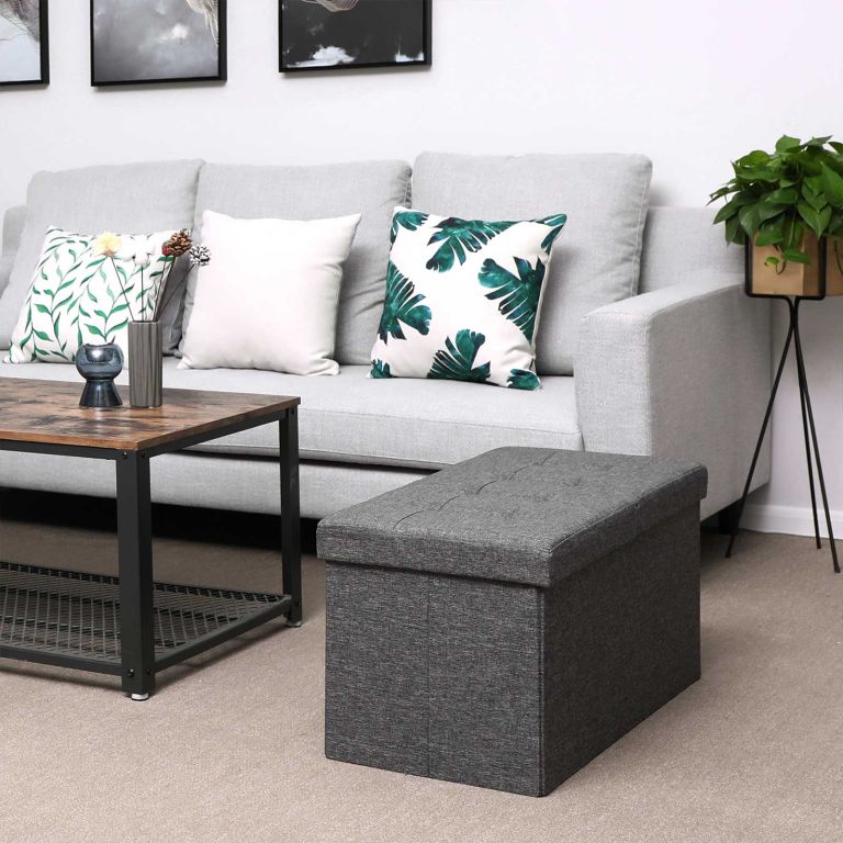 Stabilná konštrukcia z MDF triedy E1 a certifikovaná nosnosť 300 kg z nej robia spoľahlivú lavicu pre dvoch. Ľanový poťah v tmavo šedej farbe je príjemný na dotyk a ľahko ladí s interiérom. Zostavenie zaberie minútu – tri diely, jasný návod, hotové bez náradia.
