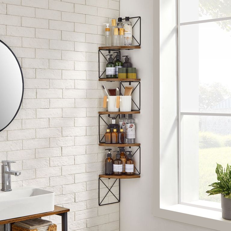 Premeňte prázdny roh na štýlový úložný priestor. Rohová polica VASAGLE prináša elegantné spojenie rustikálnej hnedej a čiernej ocele, ktoré pôsobia moderne a zároveň útulne. Vďaka 5 praktickým poličkám sa hodí do obývacej izby, spálne, kúpeľne aj kuchyne – či už chcete vystaviť knihy, kvety alebo dekorácie.