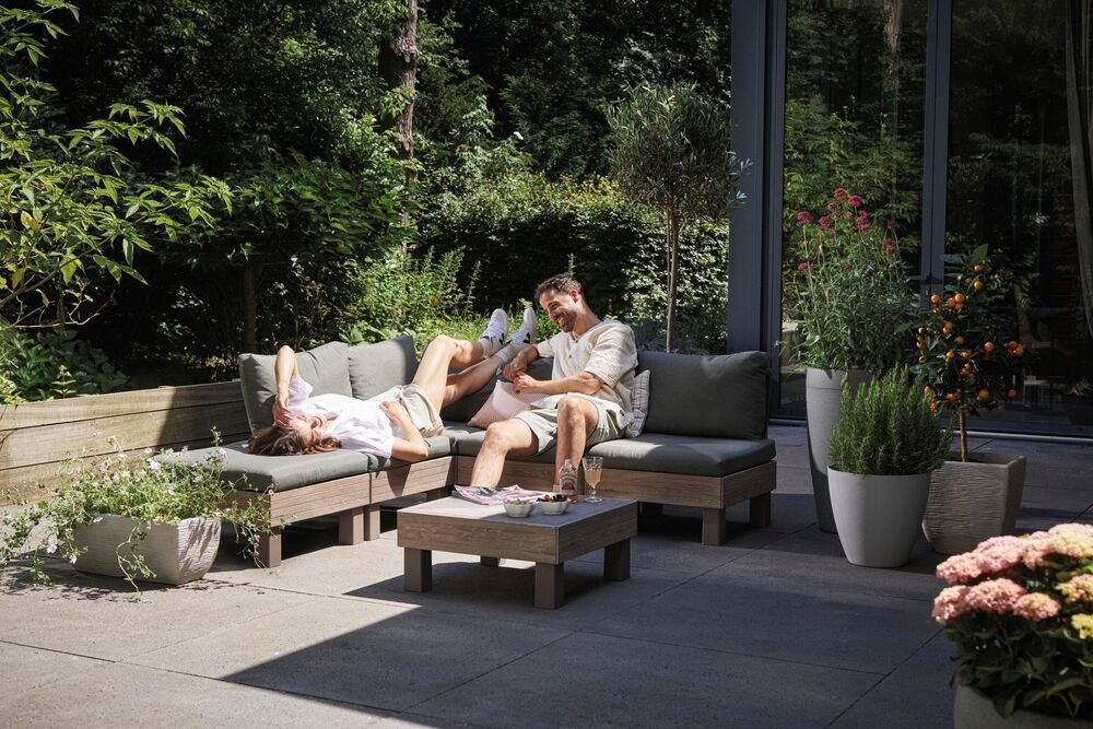 Vytvorte si dokonalé vonkajšie posedenie presne podľa svojich predstáv. Sada ELEMENTS ponúka maximálnu flexibilitu vďaka dômyselnému modulárnemu systému, ktorý umožňuje ľahko meniť usporiadanie podľa aktuálnych potrieb. Pohodlné vankúše a opierky z príjemnej polybavlny zaručia relaxáciu v záhrade aj na terase, či už si chcete užiť chvíle s rodinou alebo priateľmi.