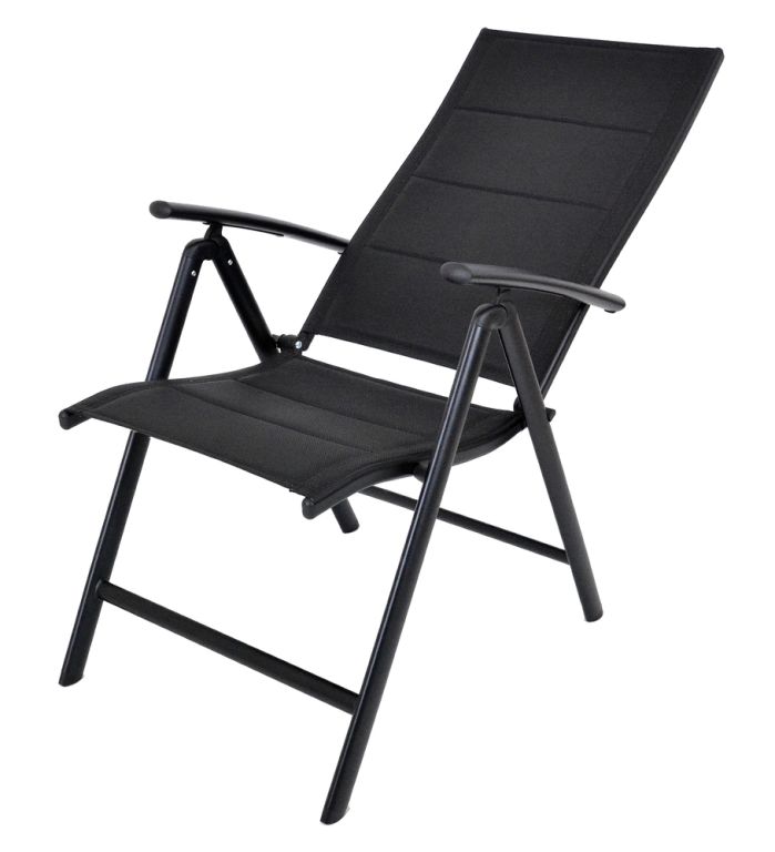 Záhradné polohovacie kreslo čierne hliníkové skladacie
