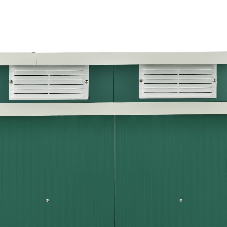 Užite si poriadok a pokoj na svojej záhrade vďaka tomuto priestrannému domčeku na náradie. Moderný tmavo zelený dizajn sa hodí do každého prostredia a poskytne bezpečné miesto pre vaše vybavenie aj v zime.